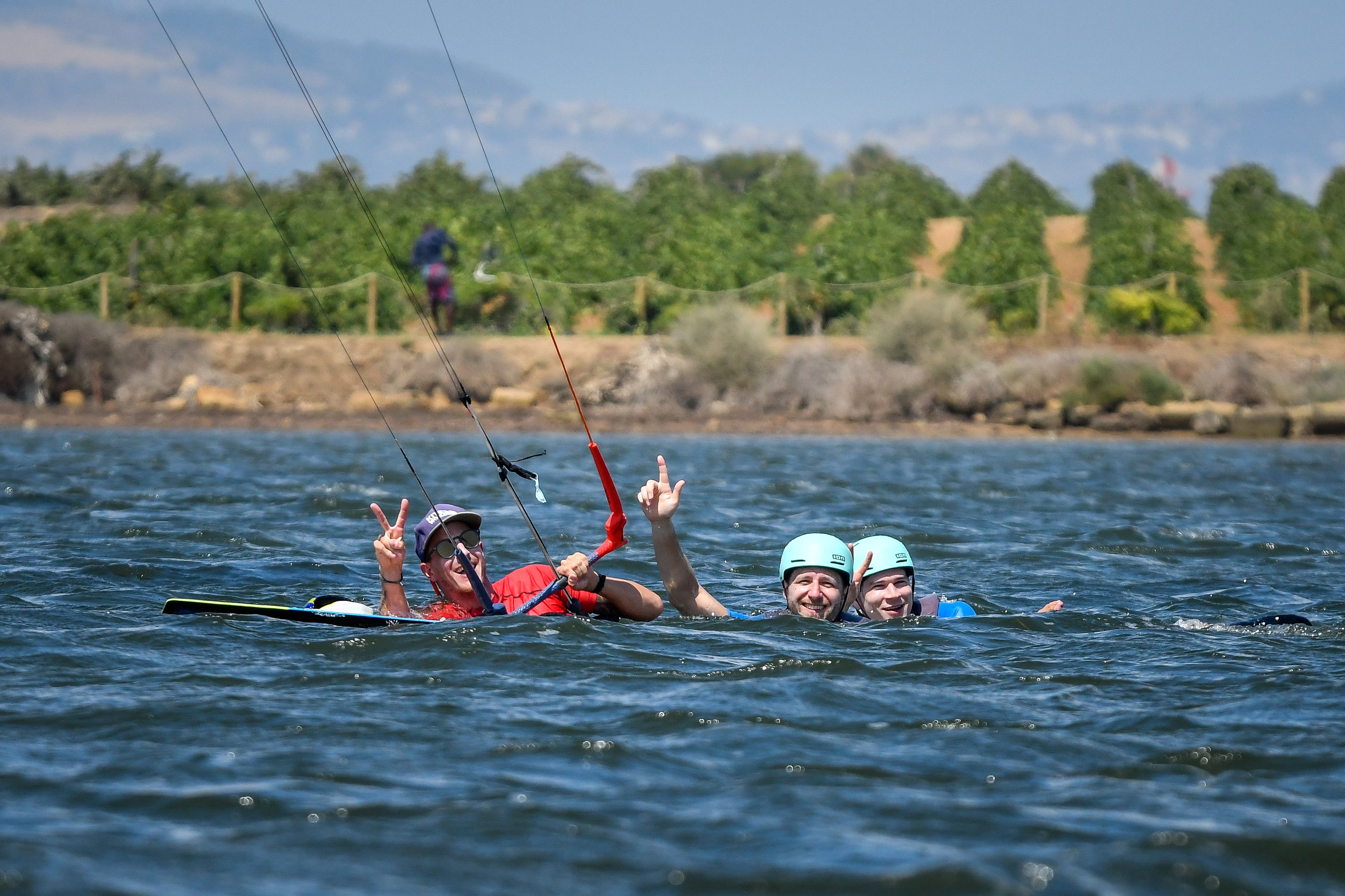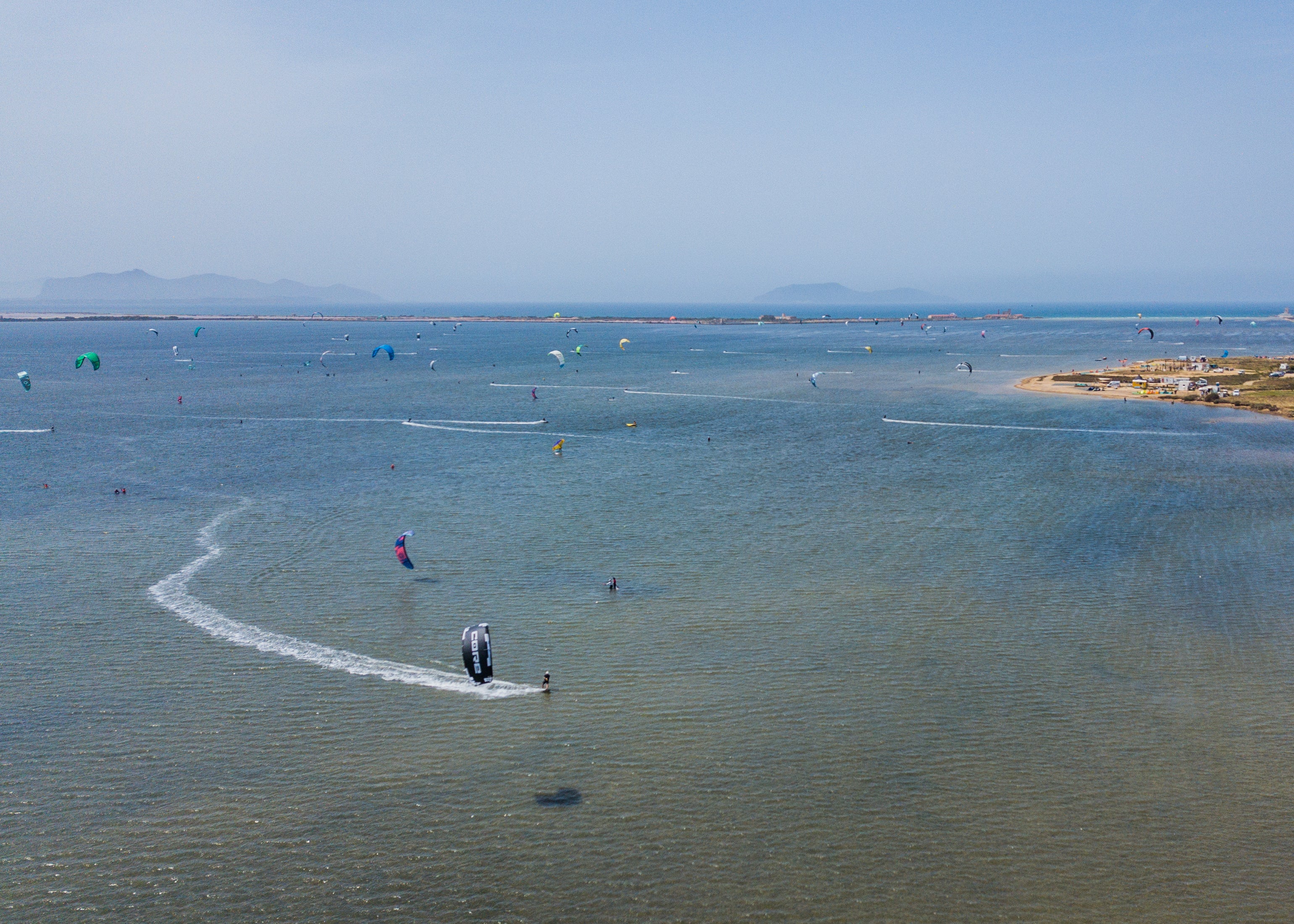 During summer, reliable thermal winds create steady riding conditions. The lagoon offers flat, shallow water with no reefs or obstacles, making it ideal for beginners and perfect for intermediate riders looking to progress.